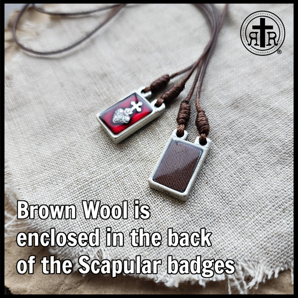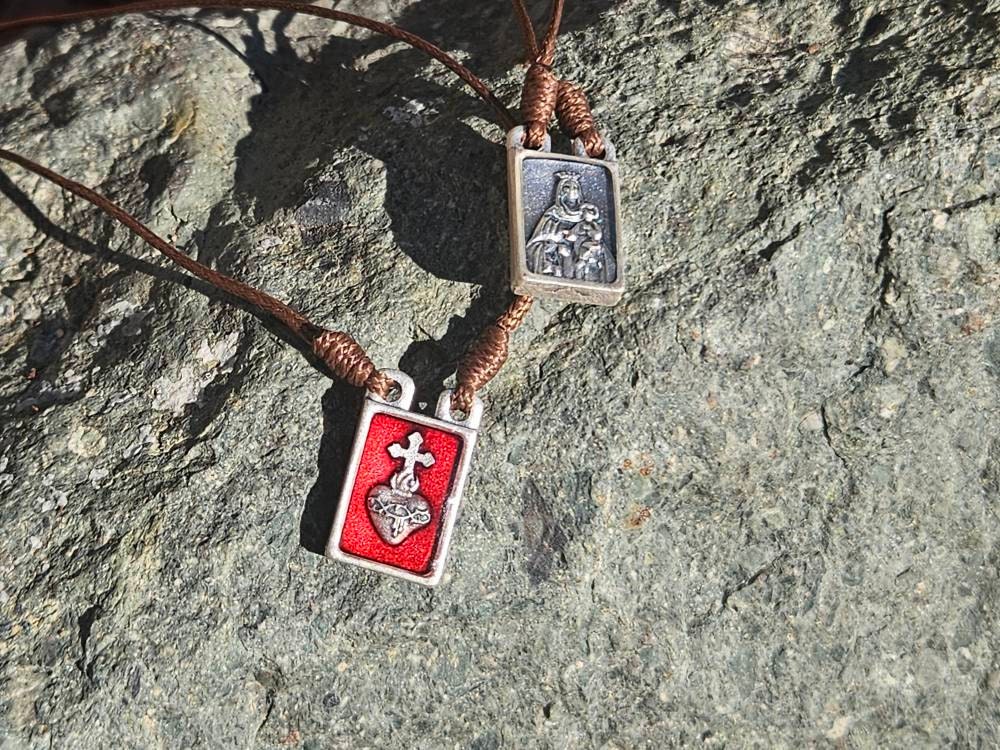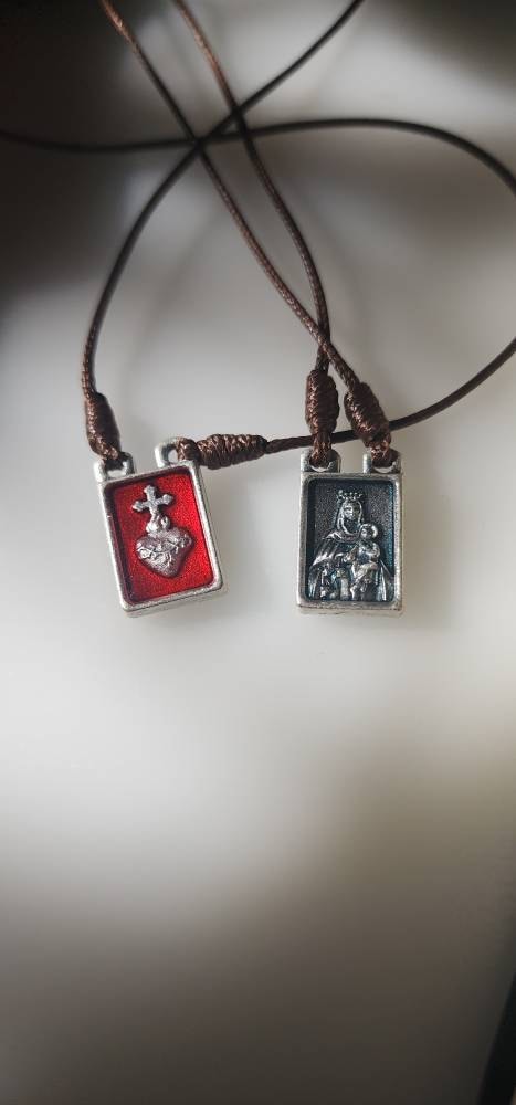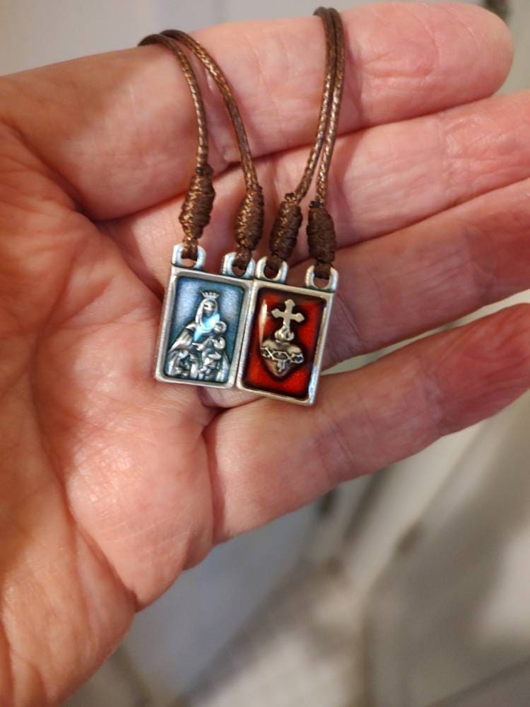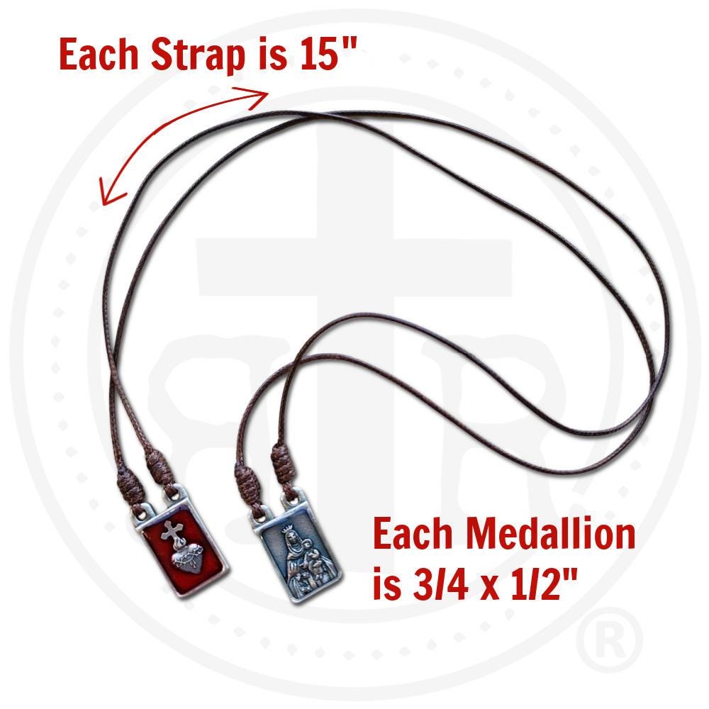 + Scapular medallion measures 0.75 x 0.5" and is protected by clear resin