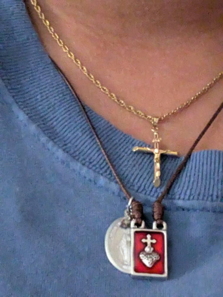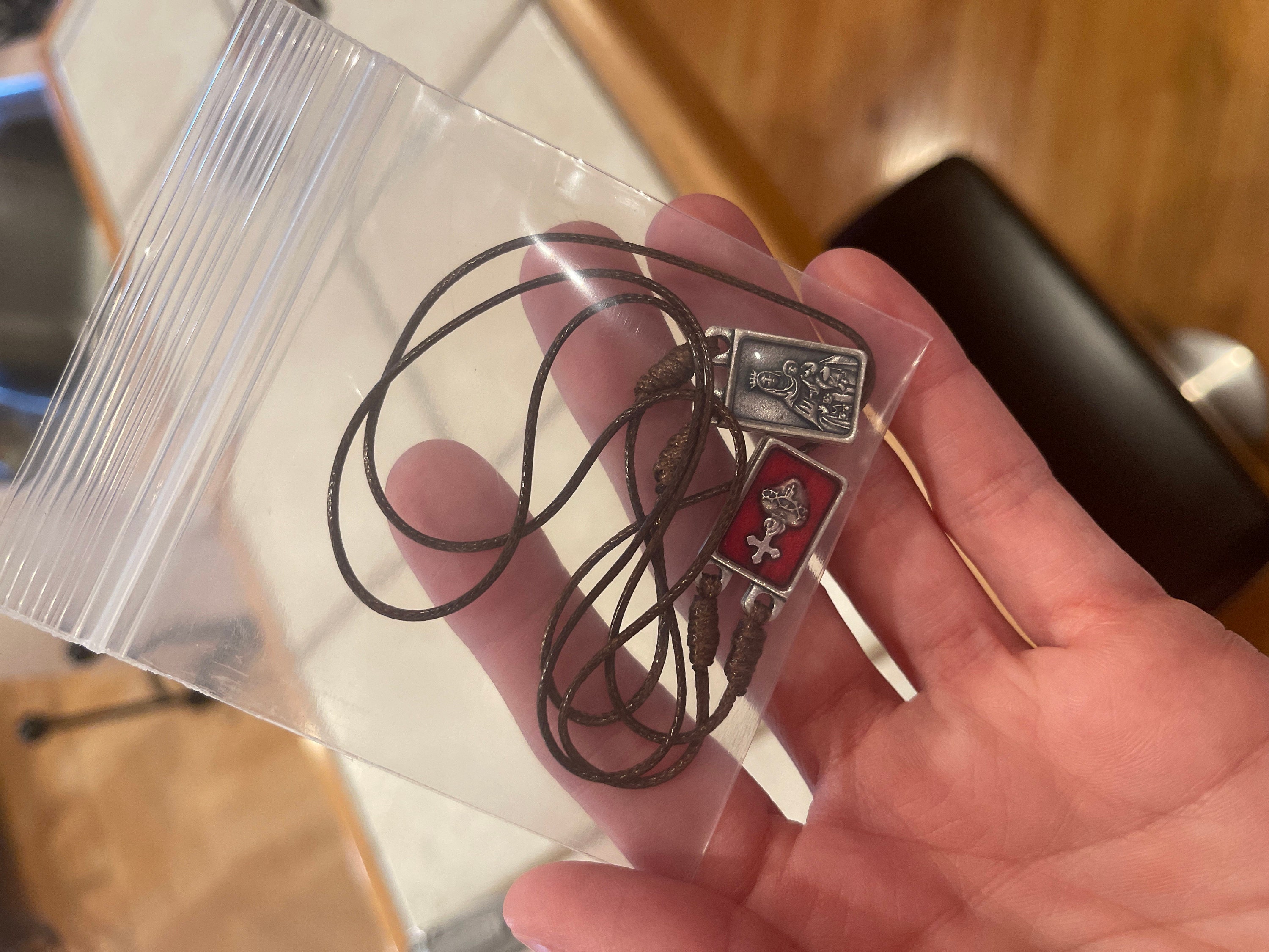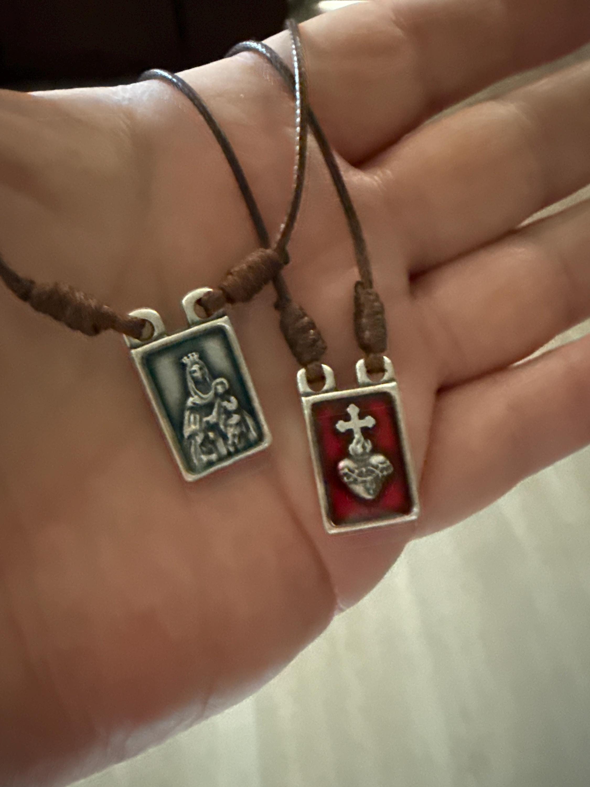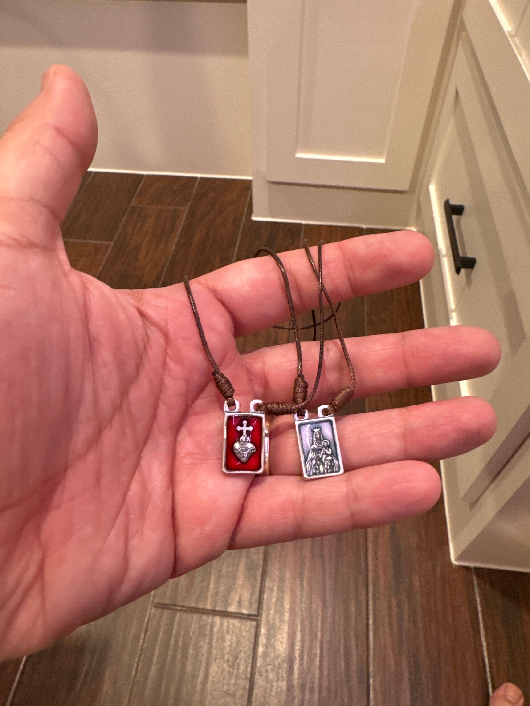 + Scapular medallion measures 0.75 x 0.5" and is protected by clear resin