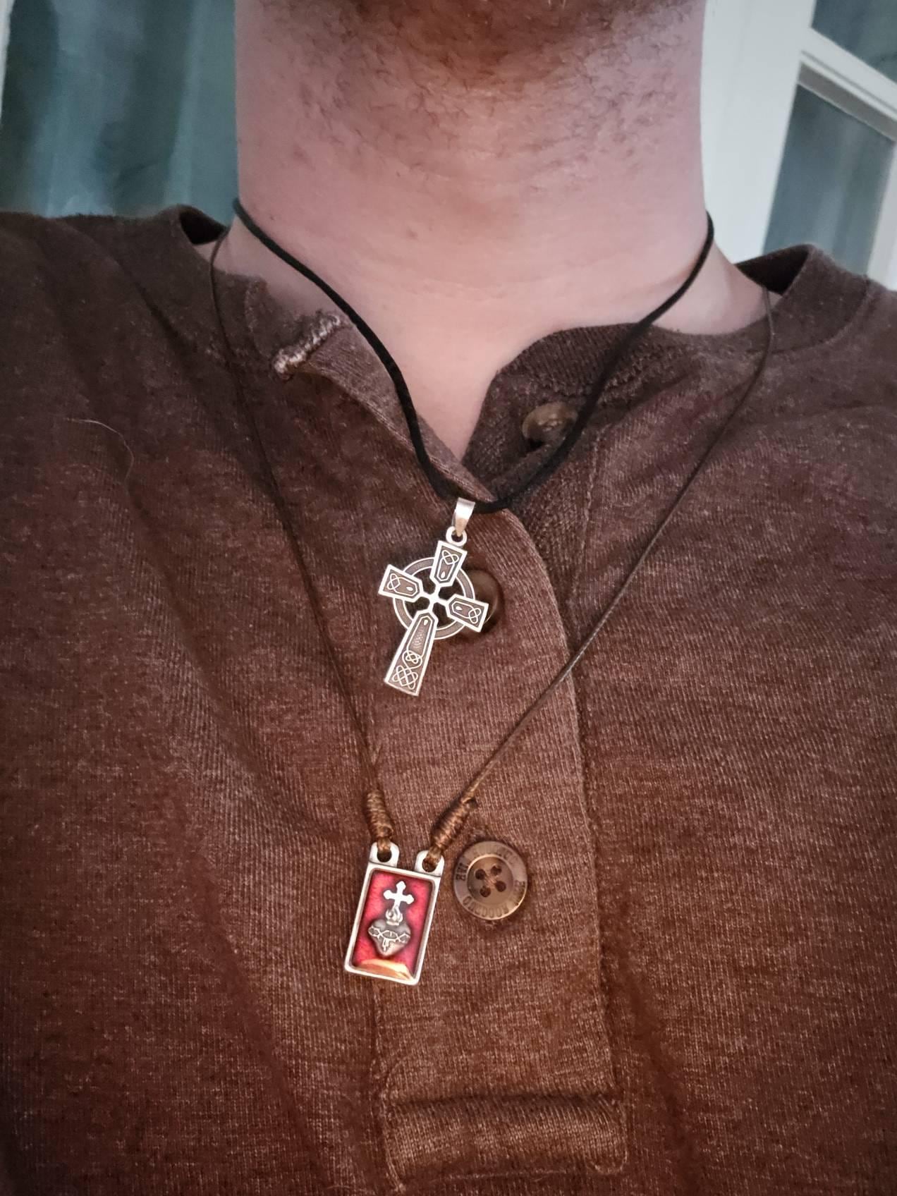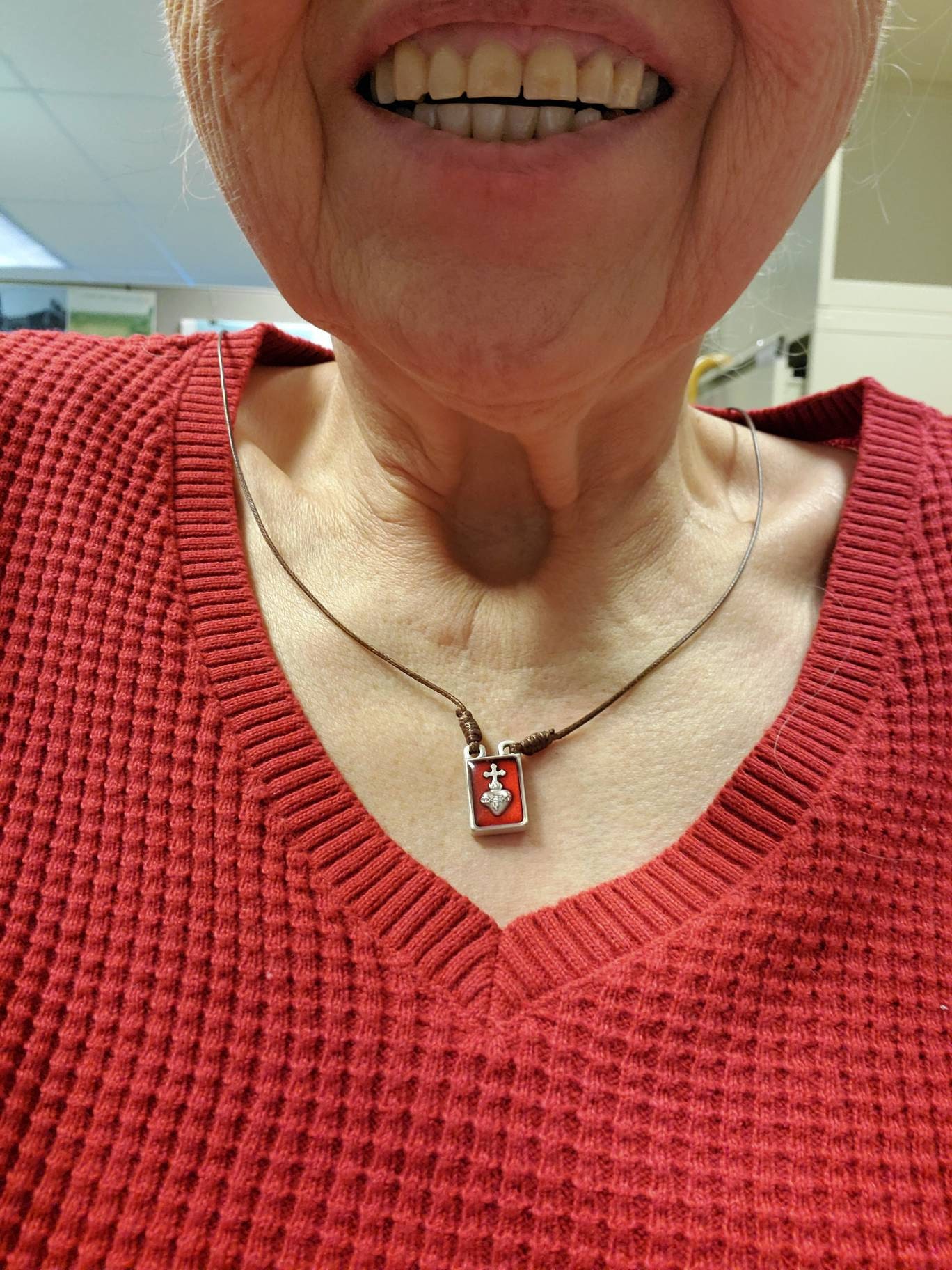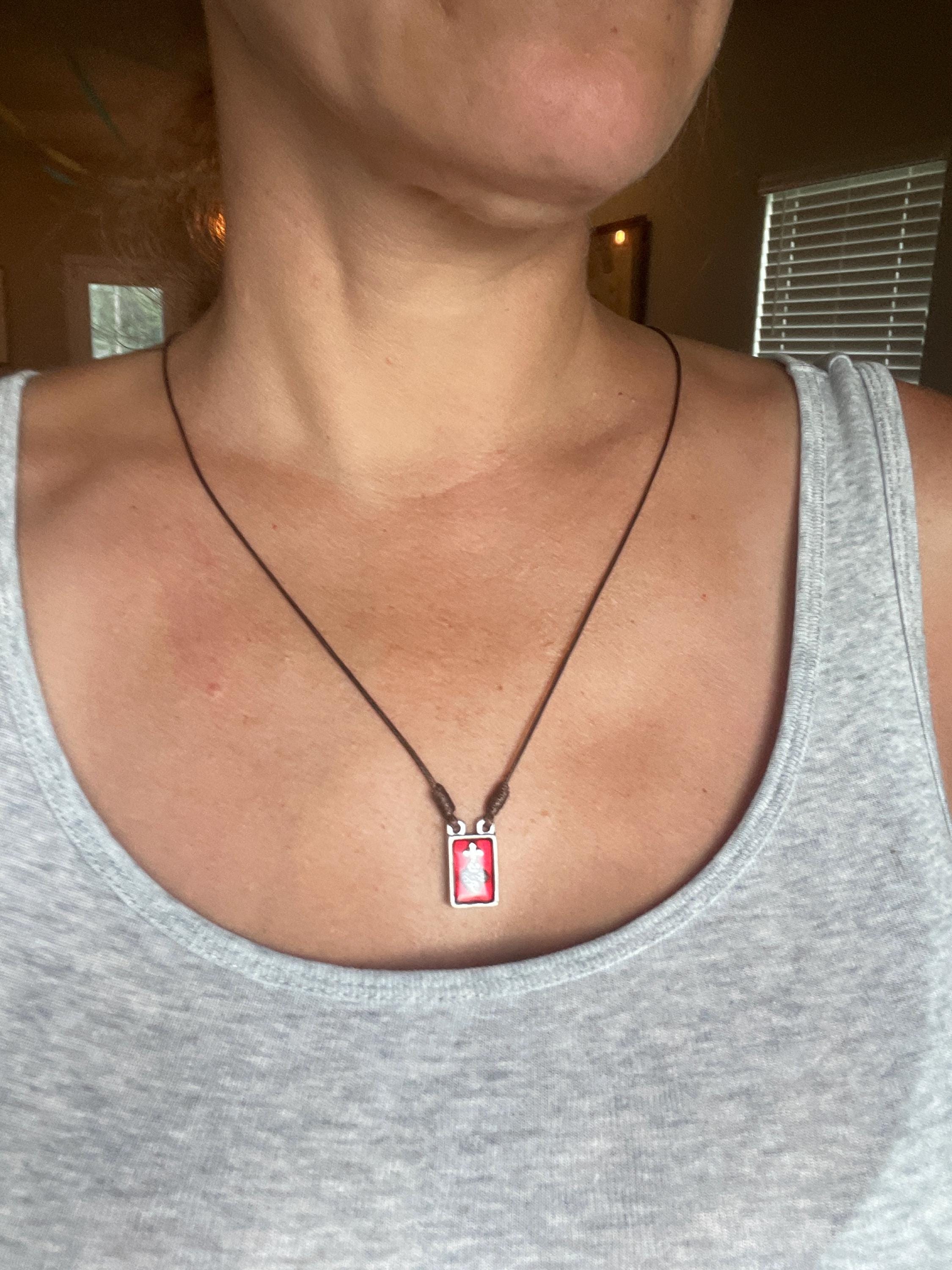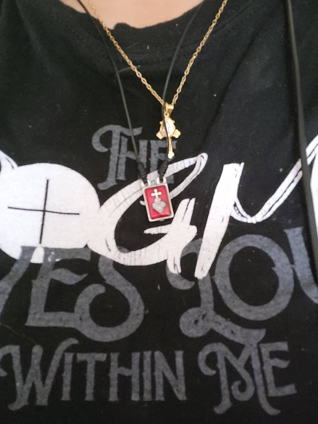 + Scapular medallion measures 0.75 x 0.5" and is protected by clear resin