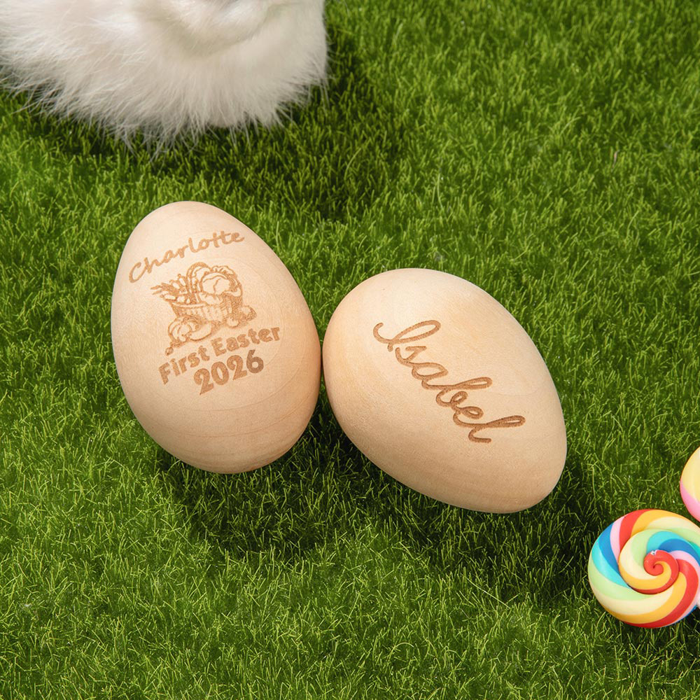 Personalized Engraved Happy Easter 2025 Wooden Egg with Name, Easter Basket Filler, Easter Egg Hunt Favor, Easter Gift for Kids/Boys/Girls/Family